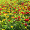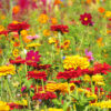 Un mélange contrasté, puissant, majoritairement composé de zinnias géants dont les coloris s’affrontent à armes égales.