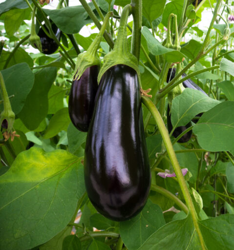 Les aubergines (Solanum melongena), faisant partie de la famille des Solanacées comme la tomate ou la pomme de terre, elle est originaire de l’Inde. Cette plante a un besoin de chaleur très important.