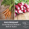 Mélange de légumes croquants composé de carotte Nantaise améliorée 3 et de radis de 18 Jours. Le duo parfait pour des apéros frais diététique durant l’été !