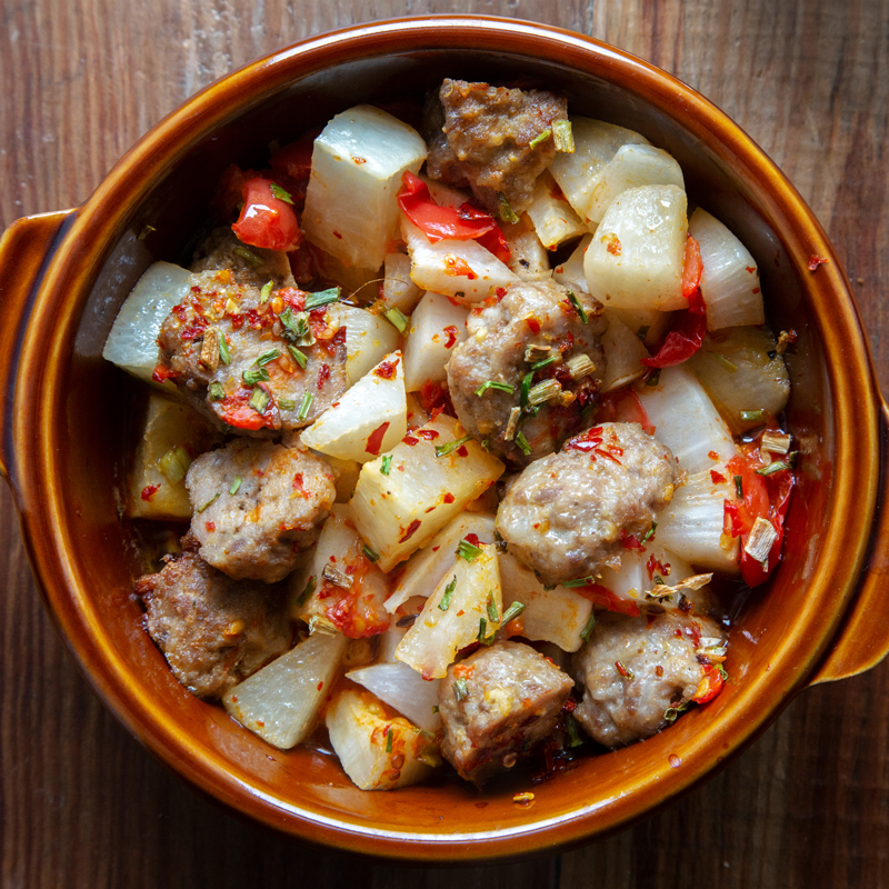 Variété classique à grosse racine aplatie et à collet rouge. Chair blanche et tendre de bonne qualité.
