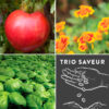 Un trio savoureux de tomate Cœur de Bœuf et basilic pour des salades d’été pleine de fraicheur ! Les œillets d’Inde, en plus d’embellir la jardin, vont protéger vos tomates des attaques de ravageurs.