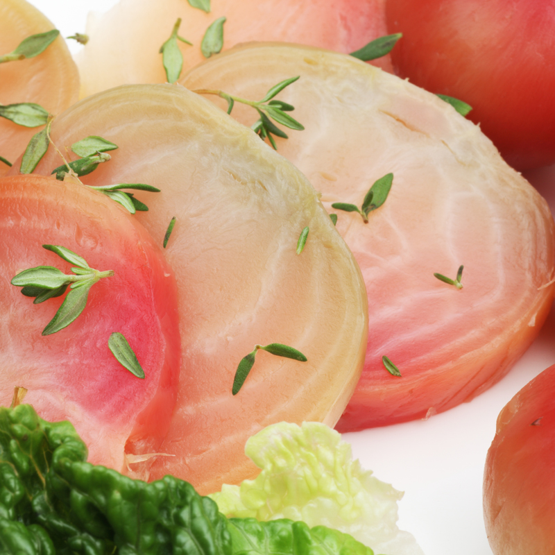La betterave Albina Vereduna est une variété ancienne originaire de Hollande. Elle produit de grosses racines ronde en forme de toupie de couleur blanche. Cette variété encore méconnue est dotée d’excellente qualité gustative. Sa chair blanche, est épaisse et à la fois tendre à la saveur douce et sucrée, rappelant le goût de la patate douce. Récoltez les quand elles sont jeunes (500g maximum), elles n’en seront que meilleures ! En cuisine, elles seront parfaite à peine cuites, en accompagnement de viande ou de poisson. La première chose importante à savoir, c’est que la betterave est facile à cultiver. En effet, elle n’est pas exigeante et accepte tout type de sol. Elle est aussi assez résistante aux maladies et parasites. Cependant, la betterave craint la sécheresse, donc n’hésitez pas à pailler les pieds pour garder le sol frais, vos betteraves conserveront ainsi leur qualité gustative. Elle craint aussi le gel, donc veillez à ne pas les planter trop tôt en pleine terre, et à ne pas les récolter trop tard. Offrant un fort rendement, vous ne saurez vite plus quoi en faire. N’hésitez donc pas à les conserver dans des bocaux stérilisés et/ou au congélateur une fois cuites. Les betteraves se consomment la majorité du temps en salade après cuisson à l’eau, mais vous pouvez aussi manger les jeunes feuilles.