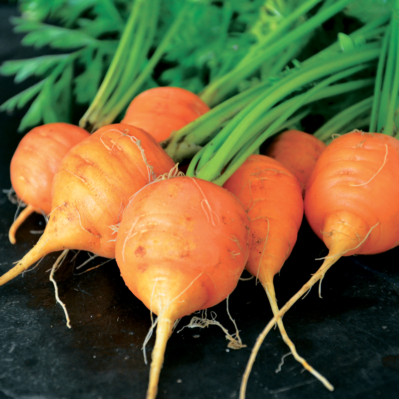 Carotte Marché de Paris 3 : Petite variété hâtive à la forme ronde et à la chair tendre, sucrée et savoureuse. Elle est très réputée pour sa qualité gustative ainsi que pour sa facilité de culture.