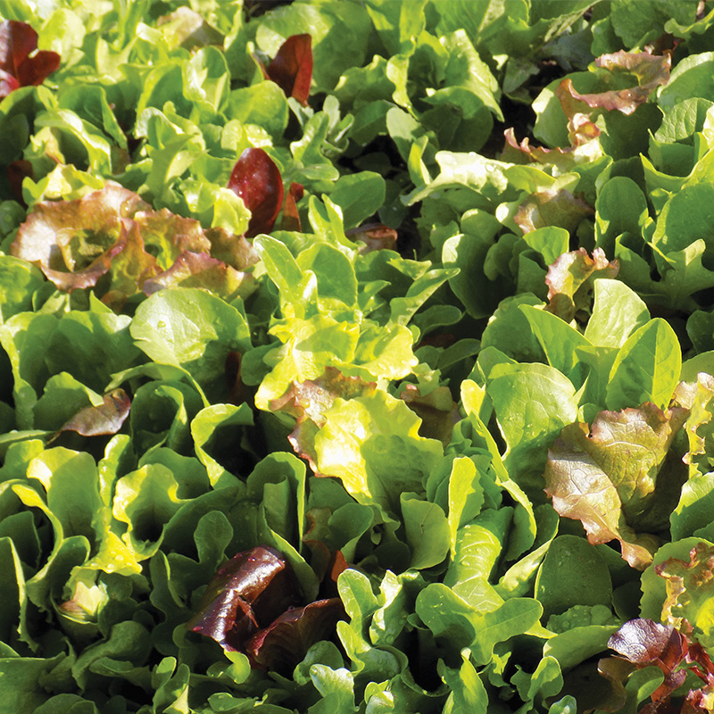 Mélange de laitue, betterave, mâche et roquette, à récolter lorsque les feuilles font 15 cm de haut. Echelonner les semis pour faire plusieurs récoltes.